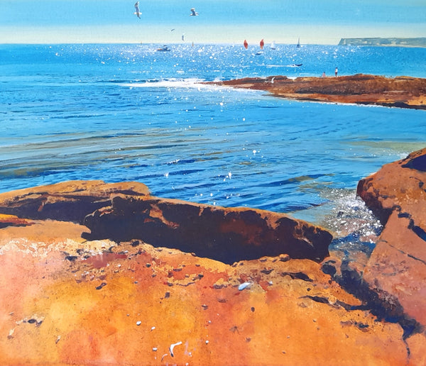 Featuring coastline views of the Isle of Portland where Debra has a studio, these nine new works perfectly capture Debra’s characteristic style, creating idealised views of our beautiful coastline.