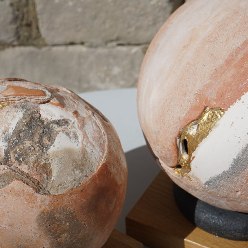 The clay is dried, rolled, cut to size and fired in the kiln to 1260 degrees, after which the pieces are then mounted individually into their frames.
