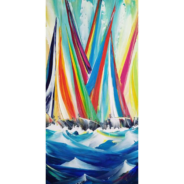 Blue Boats Panel with 3 Freestanding Boats