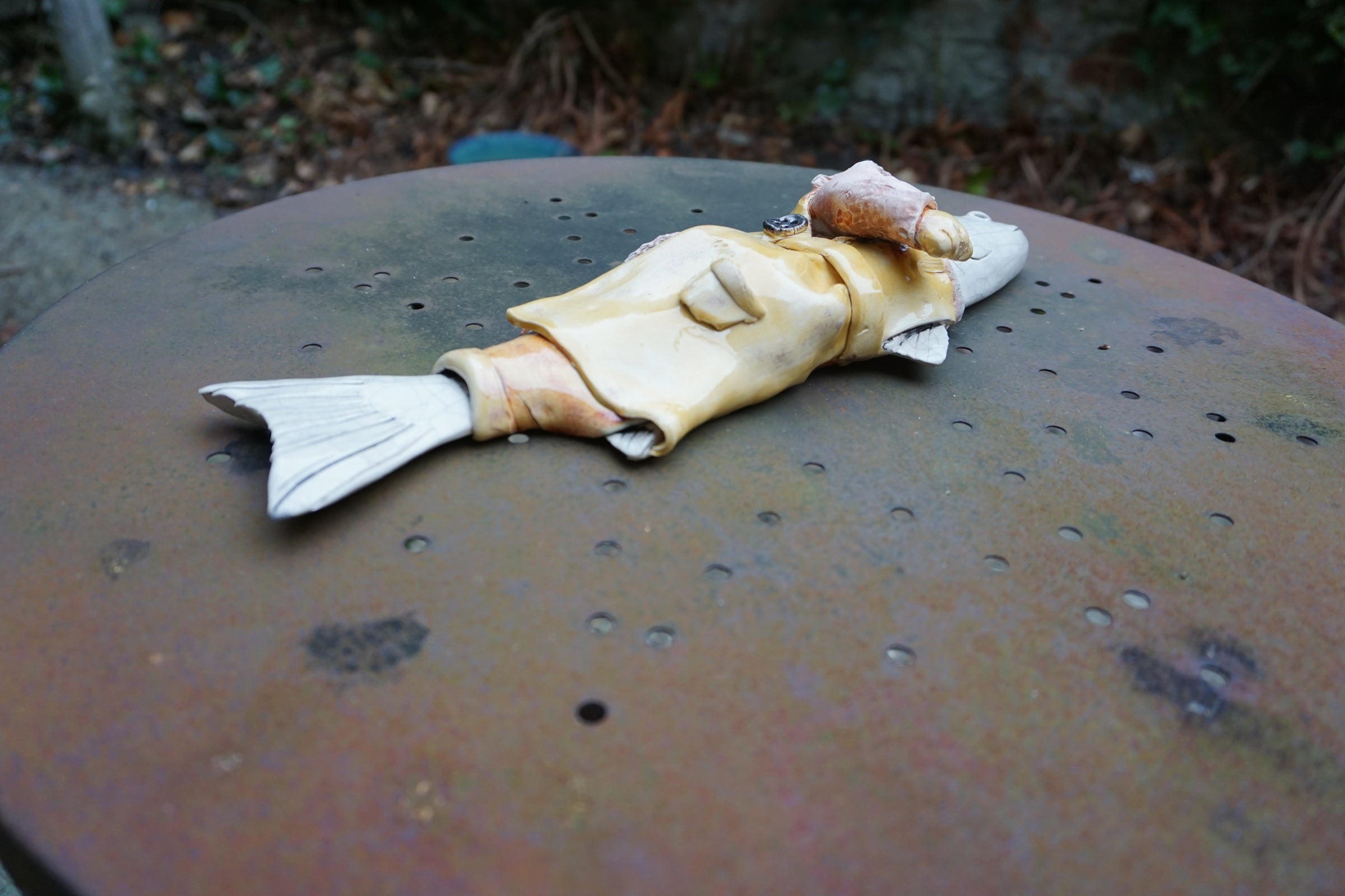 Handmade Ceramic fish designed to be mounted on the wall.