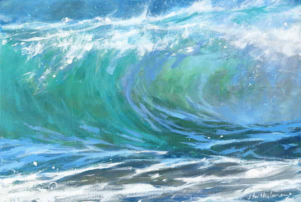 "I have been painting the sea for over 20 years and it remains one of my favorite subjects. I spend several days at a time walking the coast, typically in remote and less explored locations. Subjects tend to present themselves as they change constantly with the light and conditions. The energy and motion of the sea is something that I try to convey, hence the gestural and energetic marks. Strong light and colour are usually the things that draw me to a subject and these often become the starting point for a picture."