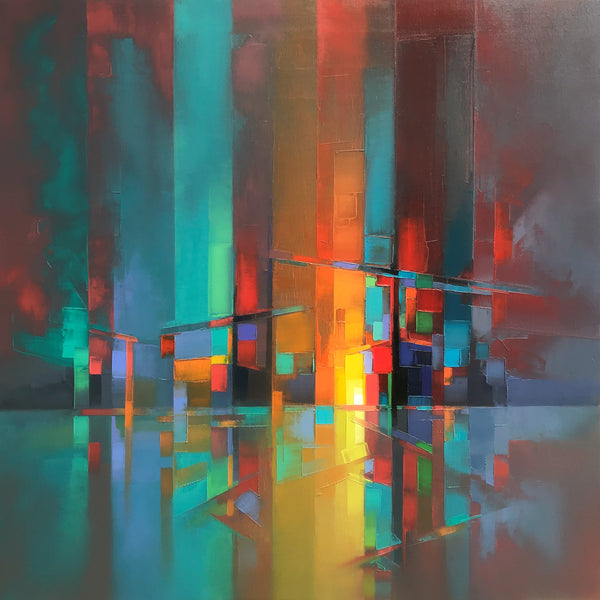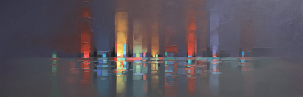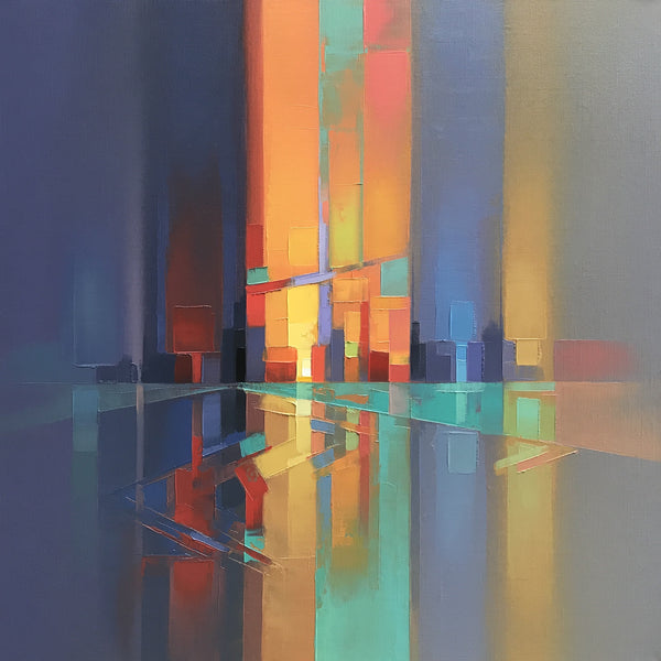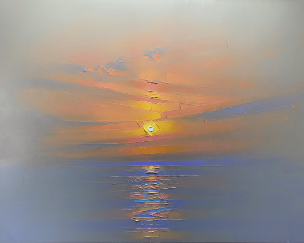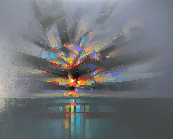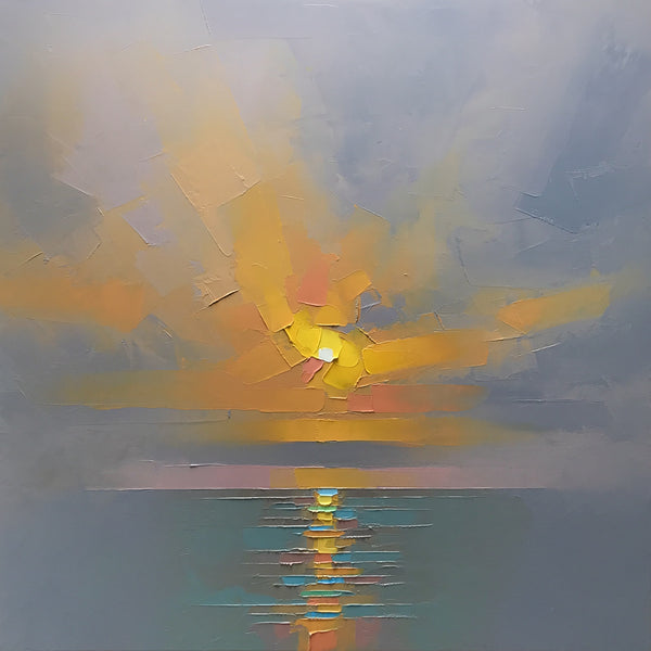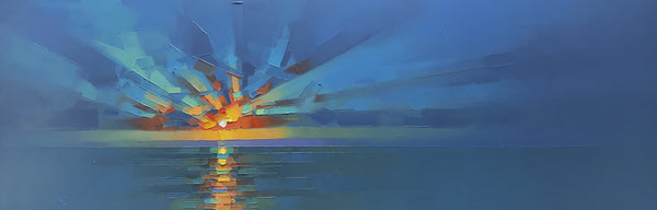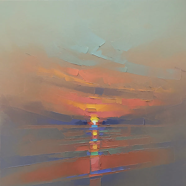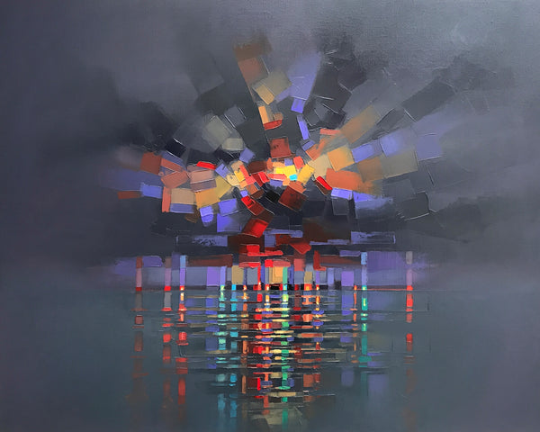 Jason’s use of colour combined with his bold application creates a compelling composition of large sweeping impasto strokes that blend seamlessly into areas of smooth vibrant colour. His work is mainly influenced by the contrast and drama of W. H. Turner and the jewel-like qualities of Gustav Klimt.”