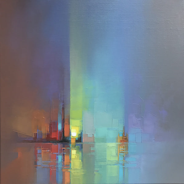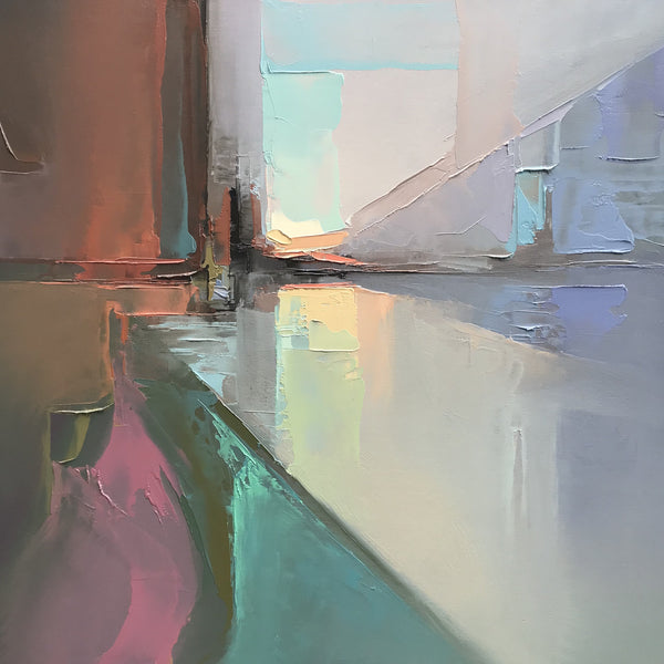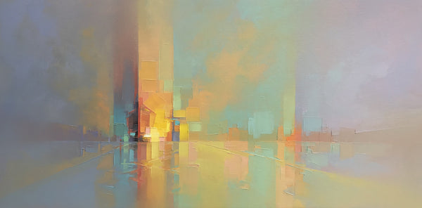 Jason’s use of colour combined with his bold application creates a compelling composition of large sweeping impasto strokes that blend seamlessly into areas of smooth vibrant colour. His work is mainly influenced by the contrast and drama of W. H. Turner and the jewel-like qualities of Gustav Klimt.”