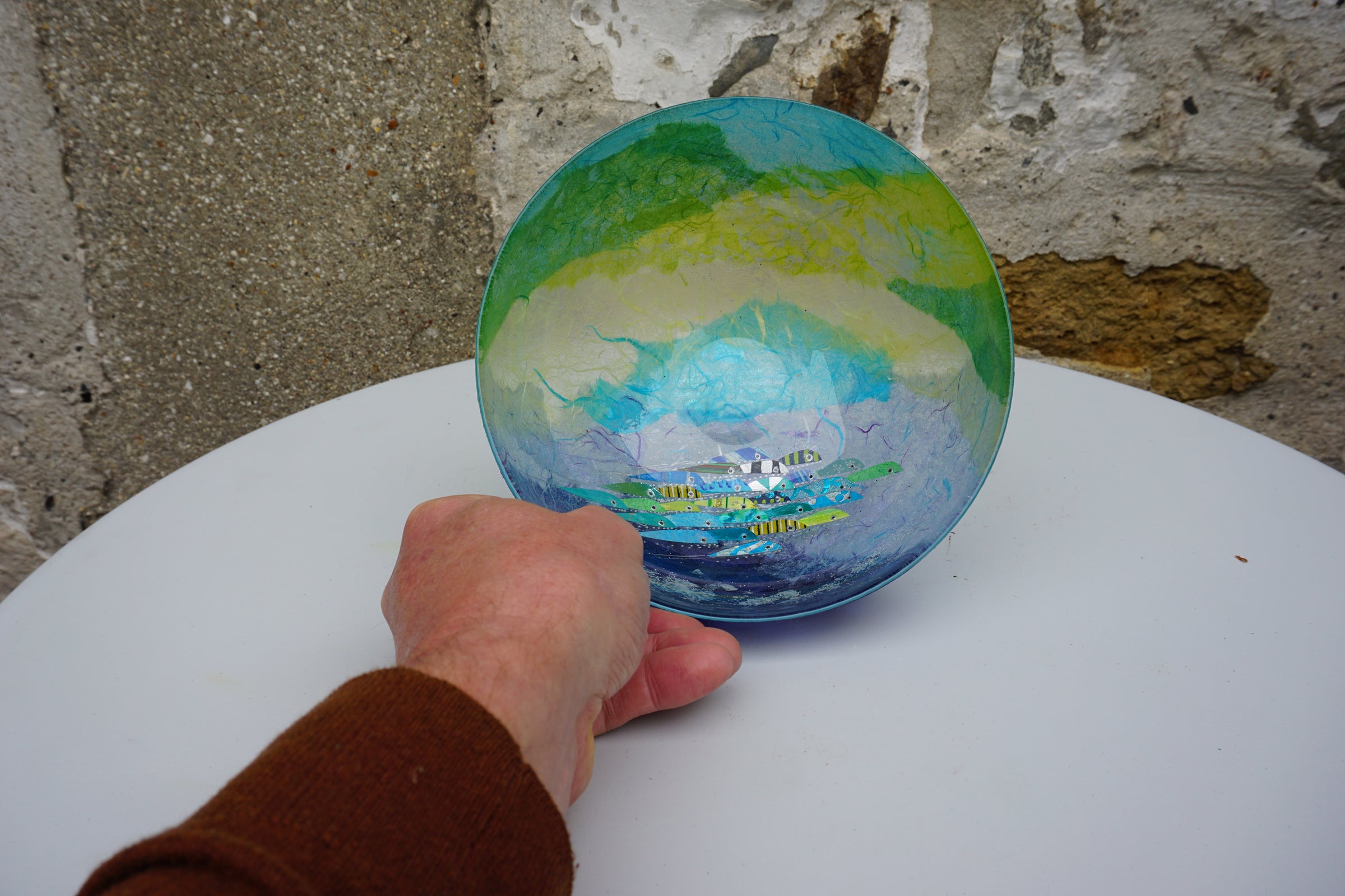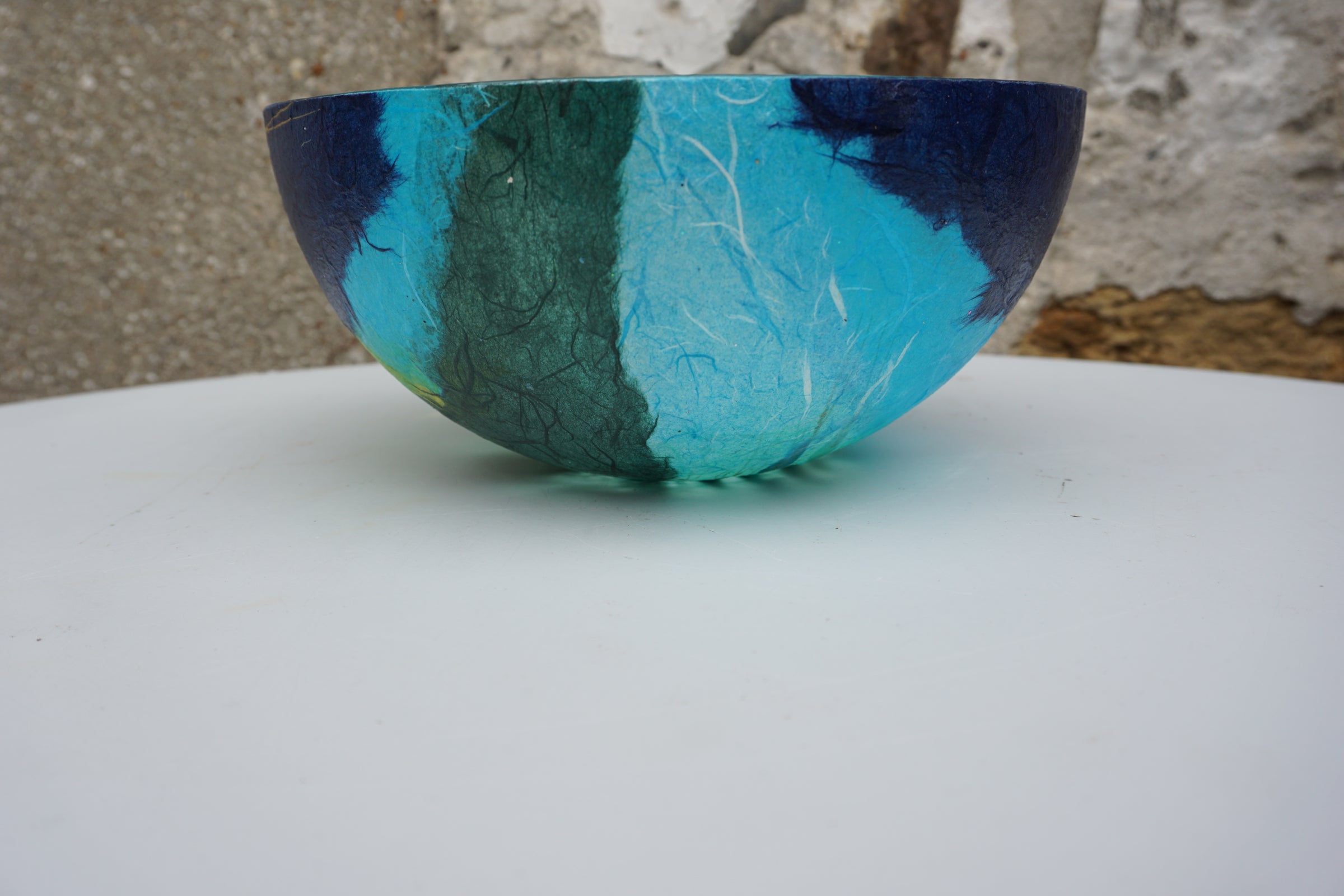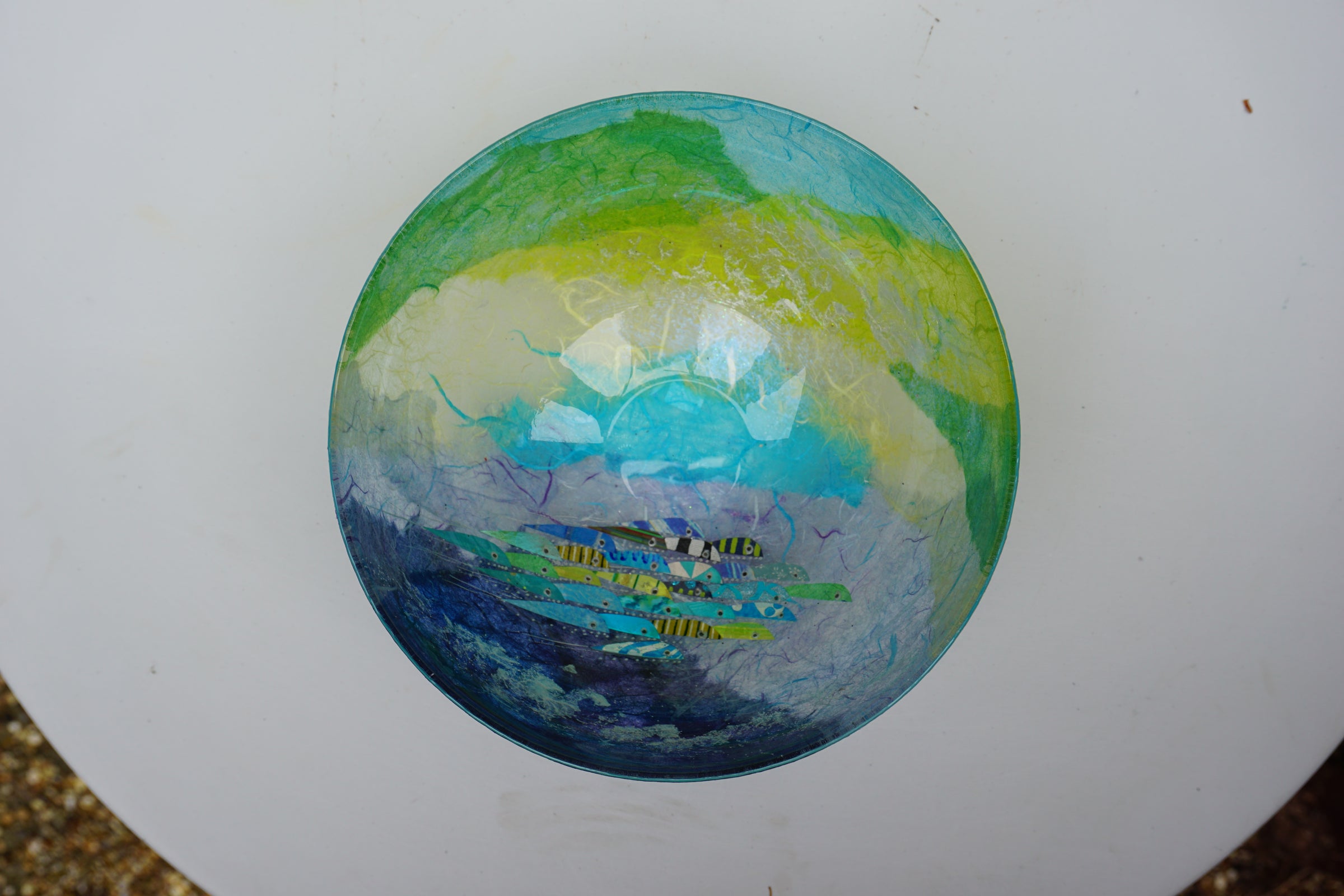 Hand made bowl using Japanese silk paper, silver and gold foils.
