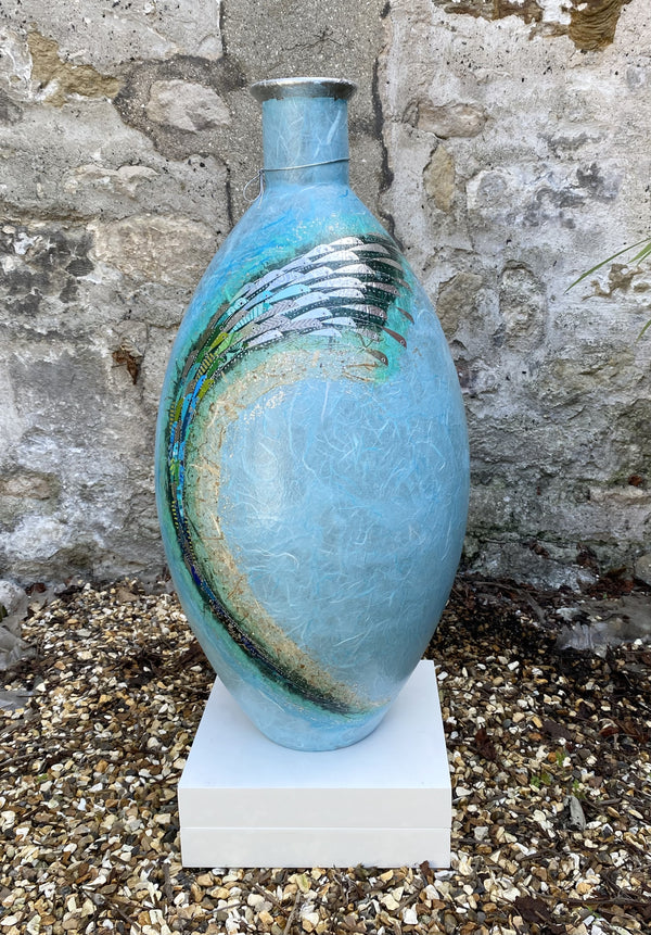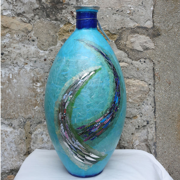 Tall Fat Bottle Vase (Dark Blue Rim)