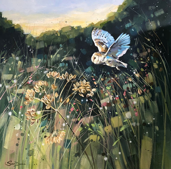 Sam paints from her studio at home, near to the town of Sherborne in Dorset, overlooking farmland and woods.