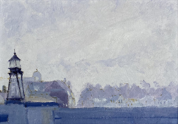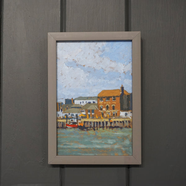 Stephen tends to work in series, and we are currently delighted to be showing his fascinating series of small paintings about Weymouth, “The Views People Don’t See”.