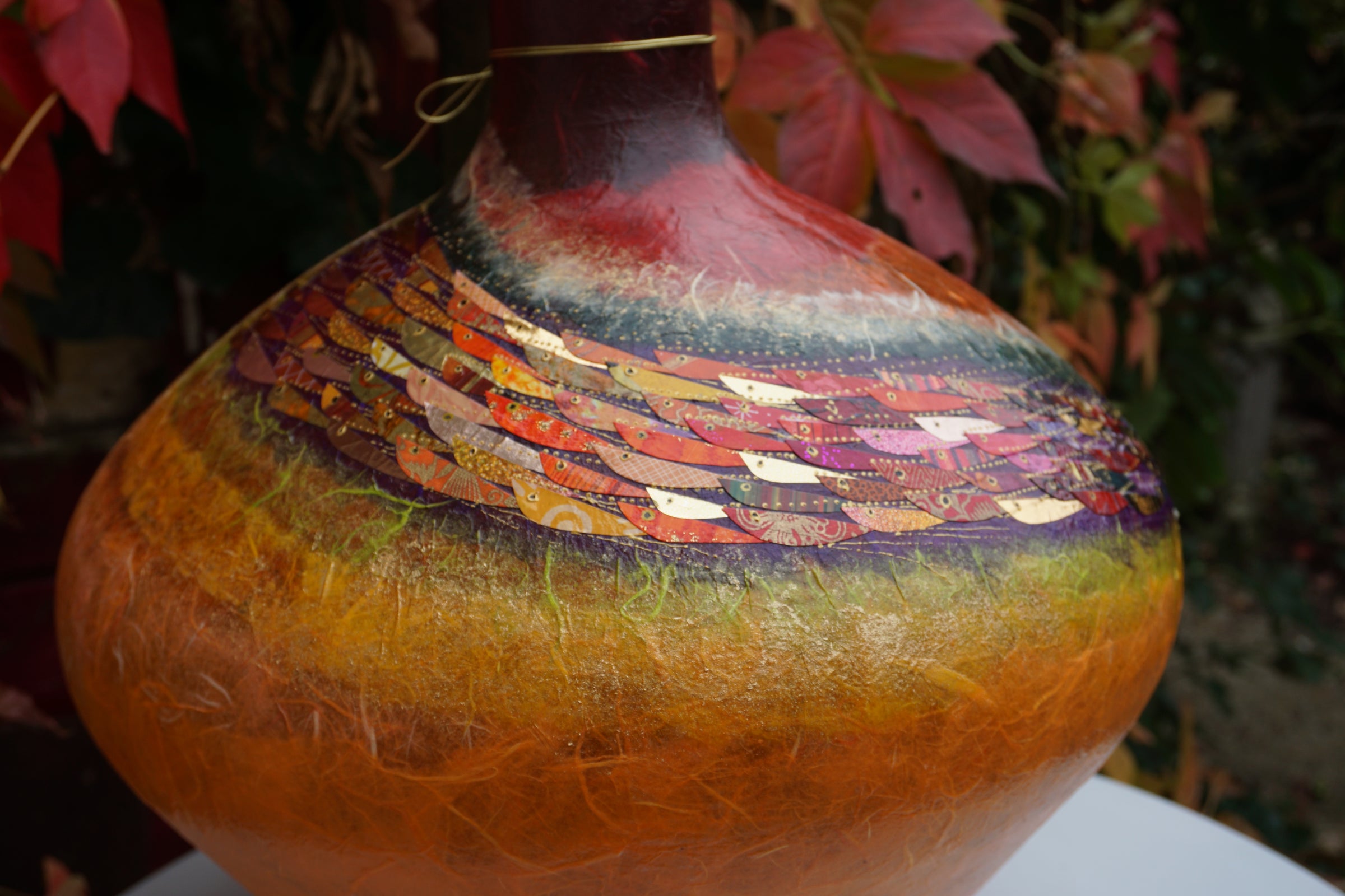 Hand decorated Japanese Silk Paper and Foils on Glass