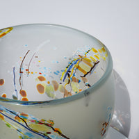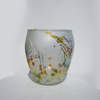 Seagrass collection is made with frits and canes applied to the final gather when blowing. Once out of the annealer they are hand painted and etched which gives its matt and shiny finish.