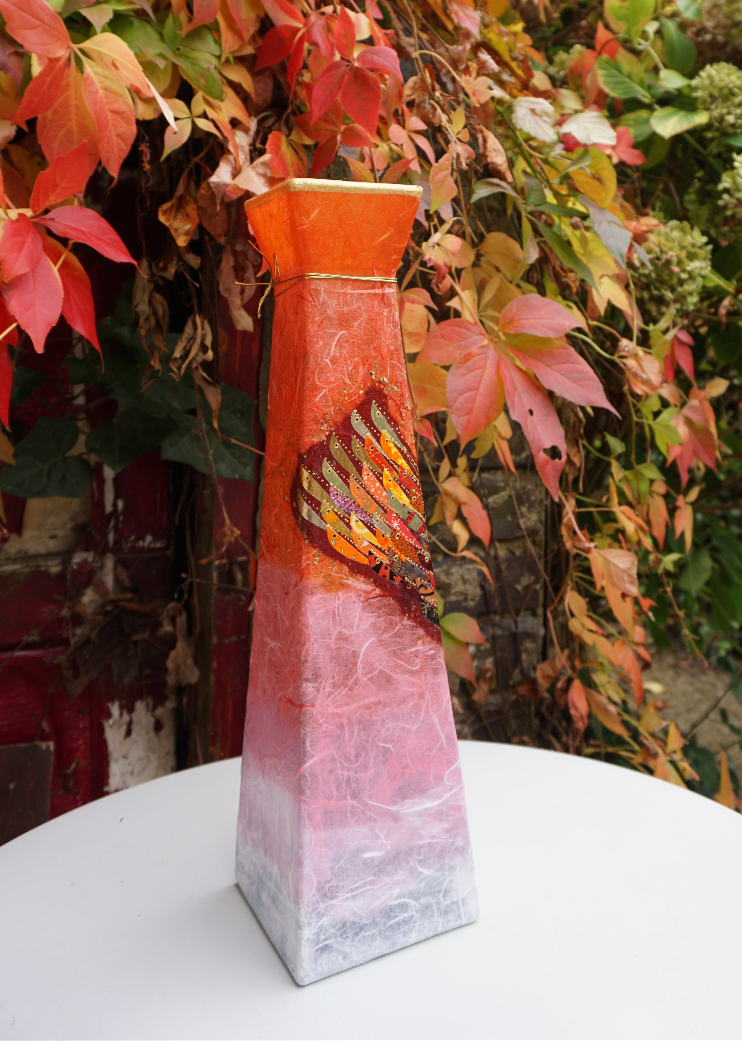 Hand decorated Japanese Silk Paper and Foils on Glass