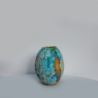 Hand-thrown stoneware ceramic vase with a deep turquoise glaze and glass on the inside